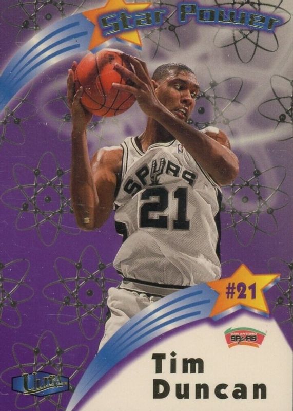 The Tim Duncan 1997 Fleer Ultra #18-SP Star Power Rookie card in Raw condition has moved down -$1.01 (-20.2%) in the last 30 days and was last sold for $3.99 .