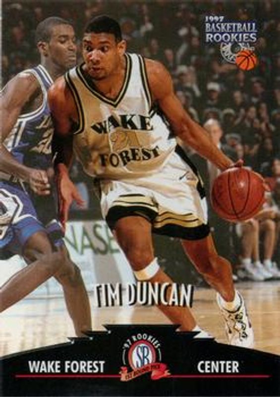 The Tim Duncan 1997 Score Board Rookies #1 Base card is 1 of 12 Tim Duncan's card variations in the 1997 Score Board Rookies set being tracked by Sports Card Investor, including #72 Base, #57 Base, #61 Base, #62 Base, and #1 Dean's List.