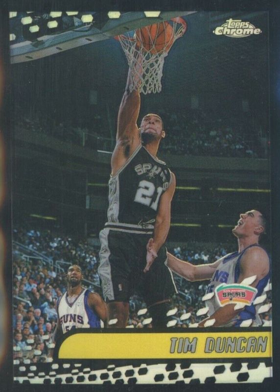 This card is 1 of 3 Tim Duncan's card variations in the 2001 Topps Chrome set being tracked by Sports Card Investor, including Base, and Refractor.