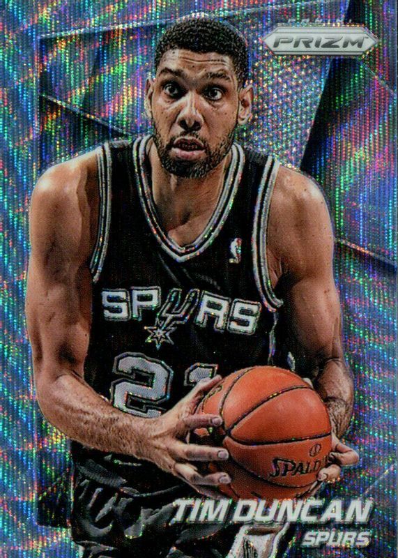 This card is 1 of 24 Tim Duncan's card variations in the 2014 Prizm set being tracked by Sports Card Investor, including Base, Blue Green Mosaic, Blue Mojo, Green, and Photo Variation.
