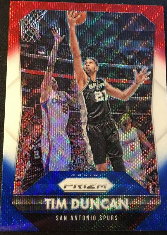 The Tim Duncan 2015 Prizm #51 Red White Blue card in Raw condition has moved up $7.00 (+352%) in the last 30 days and was last sold for $8.99 .