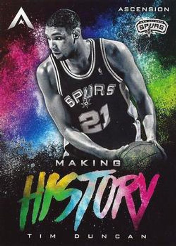 The Tim Duncan 2017 Ascension #MH33 Making History card is 1 of 2 Tim Duncan's card variations in the 2017 Ascension set being tracked by Sports Card Investor, including Overdrive /(SSP).