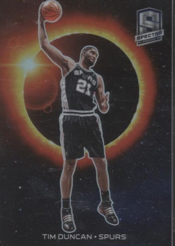 The Tim Duncan 2021 Spectra #21 Solar Eclipse /(SSP) card in Raw condition has not changed in price in the last 30 days and was last sold for $271.64 .