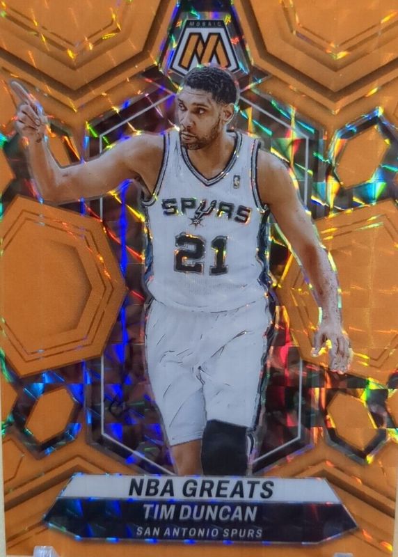 2023 Panini Mosaic Orange Fluorescent Tim Duncan /25 NBA Greats Spurs