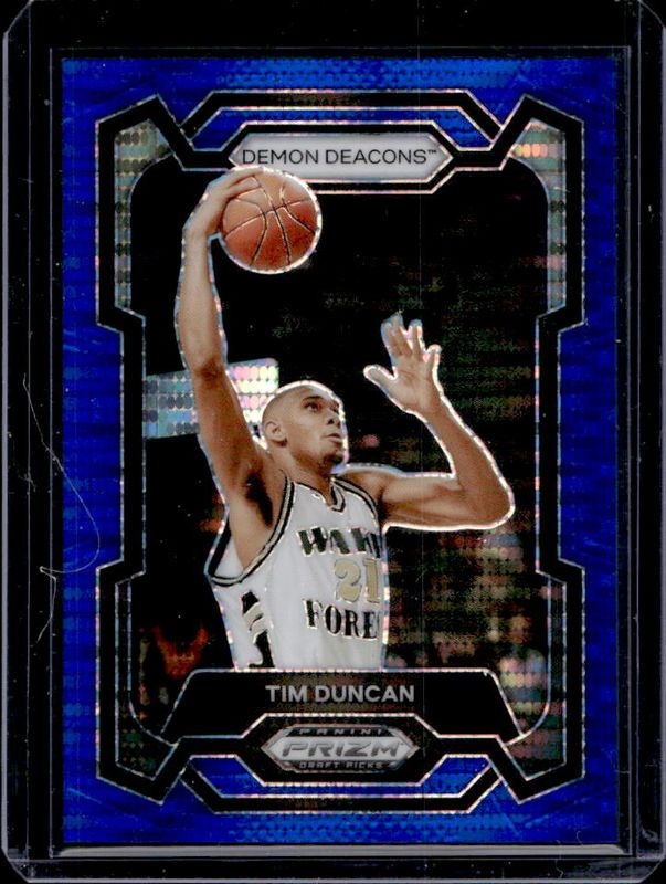The Tim Duncan 2024 Prizm Draft Picks #63 Blue Seismic /149 card is 1 of 146 Tim Duncan's card variations in the 2024 Prizm Draft Picks set being tracked by Sports Card Investor, including #63 Base, #63b Base, #63b Green, #63 Green, and #63b Green Wave.