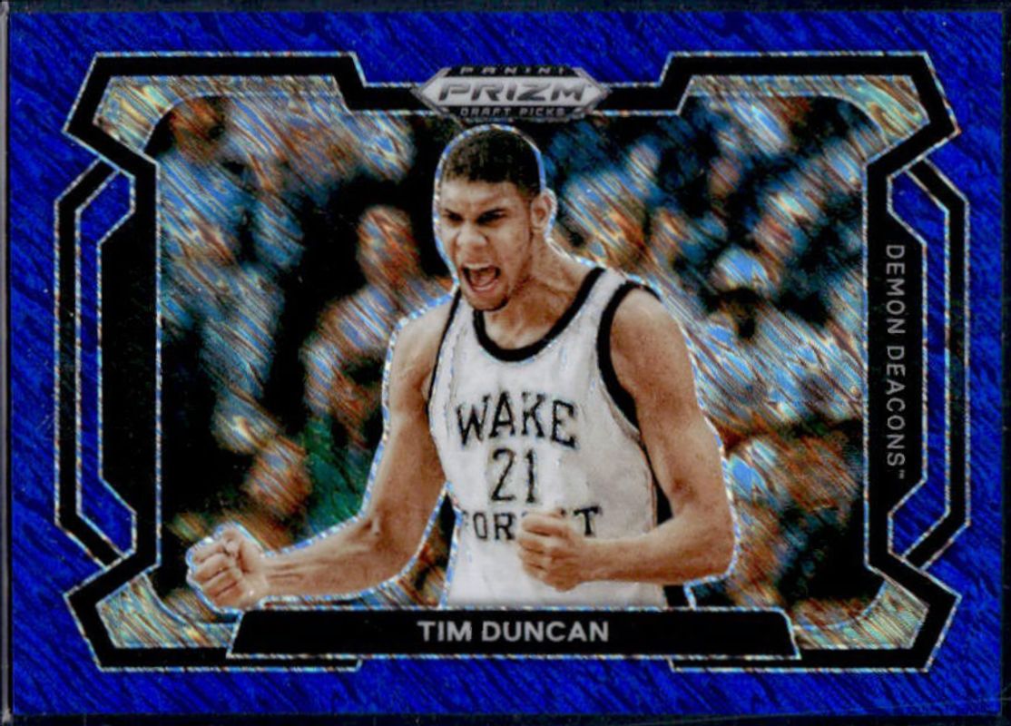 Tim Duncan 2024 Prizm Draft Picks #63b Blue Shimmer /19 RAW Price Guide