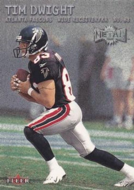 The Tim Dwight 2000 Metal #136 Base card is 1 of 2 Tim Dwight's card variations in the 2000 Metal set being tracked by Sports Card Investor, including Emerald.