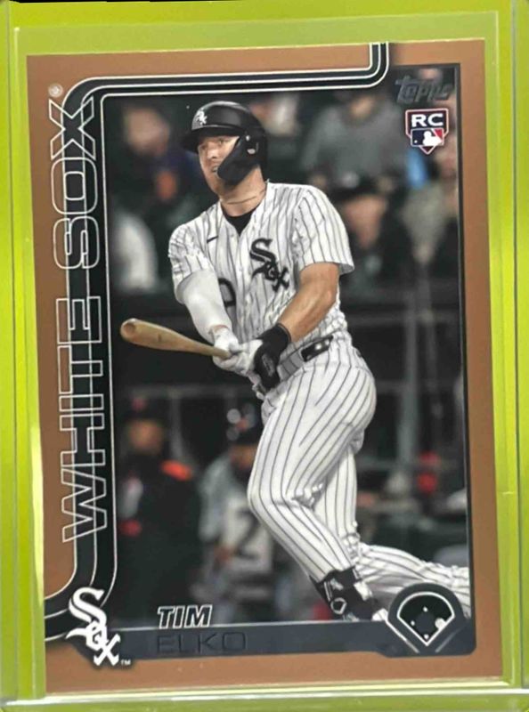 The Tim Elko 2025 Topps Update #US224 Gold /2025 Rookie card is 1 of 61 Tim Elko's card variations in the 2025 Topps Update set being tracked by Sports Card Investor, including Base, Aqua Holo Foil, Aqua Rainbow Foil, Diamante Foil, and Holiday.