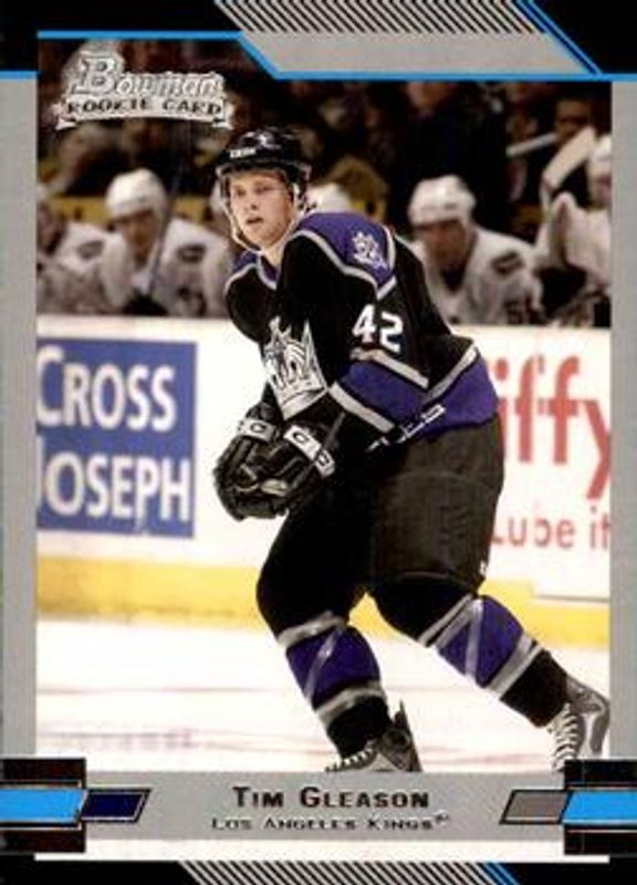 The Tim Gleason 2003 Bowman Draft Picks & Prospects #131 Base Rookie card is 1 of 6 Tim Gleason's card variations in the 2003 Bowman Draft Picks & Prospects set being tracked by Sports Card Investor, including Gold, Chrome Refractor /300, Chrome /250, Chrome X-Fractor /150, and Chrome Gold Refractor /50.