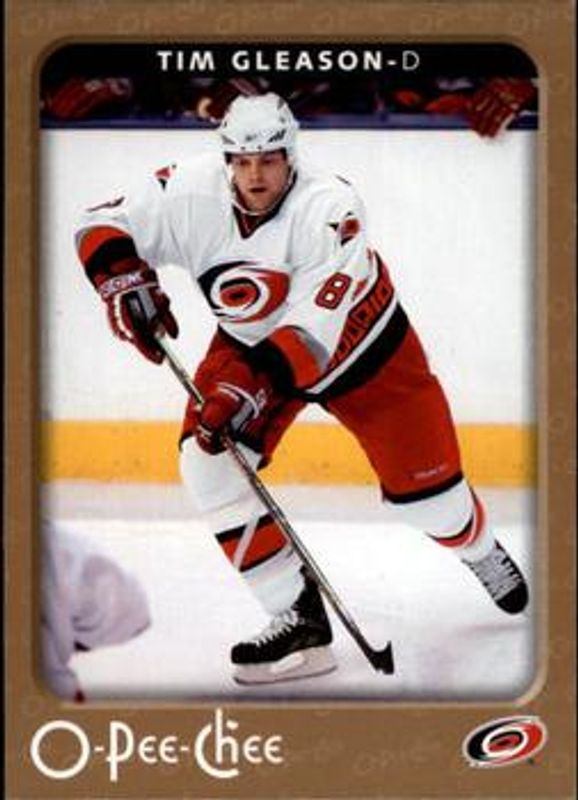 The Tim Gleason 2006 O-Pee-Chee #104 Base card is 1 of 2 Tim Gleason's card variations in the 2006 O-Pee-Chee set being tracked by Sports Card Investor, including Rainbow /100.
