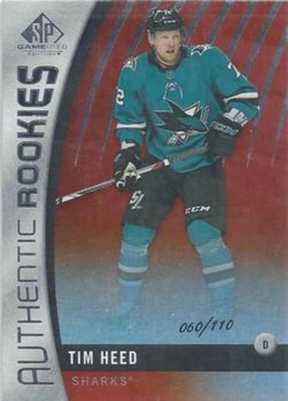 The Tim Heed 2017 SP Game Used #173 Orange Rainbow /113 Rookie card is 1 of 4 Tim Heed's card variations in the 2017 SP Game Used set being tracked by Sports Card Investor, including Base /73, Authentic Rookies Rainbow /218, and Green Storm /1.