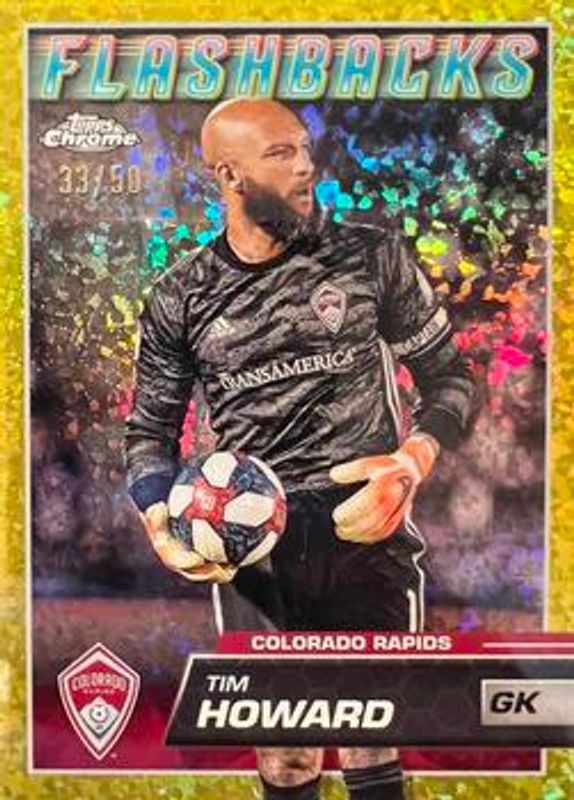 Tim Howard's Soccer cards are available in at least 29 sets. Tim Howard's biggest 7-day price movers are 2023 Topps Chrome MLS #63 Gold Mini-Diamond Refractor /50, 2023 Topps Chrome MLS #63 Aqua Lava Refractor /125, and 2023 Topps Chrome MLS #63 Gold Refractor /50.