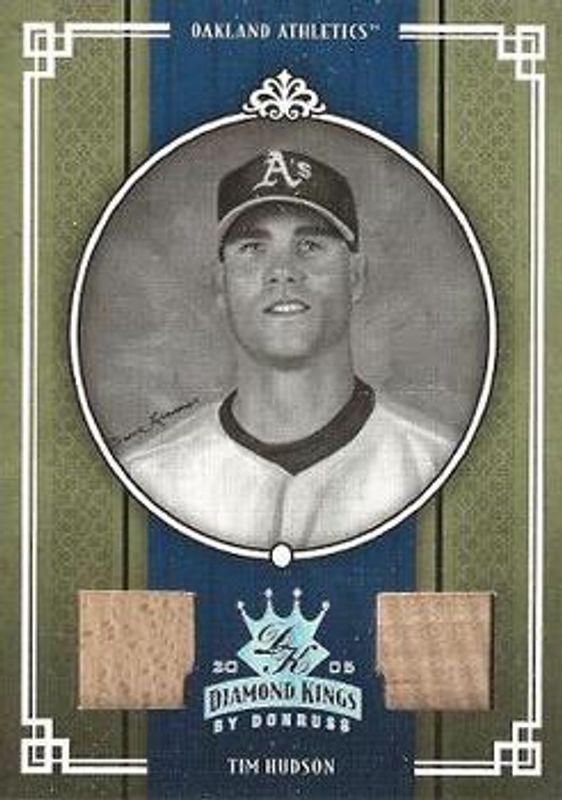 The Tim Hudson 2005 Diamond Kings #165 Materials Silver - Black & White /25 card is 1 of 157 Tim Hudson's card variations in the 2005 Diamond Kings set being tracked by Sports Card Investor, including #165 Base, #317 Base, #165 Black & White, #317 Framed Red, and #165 Framed Red.