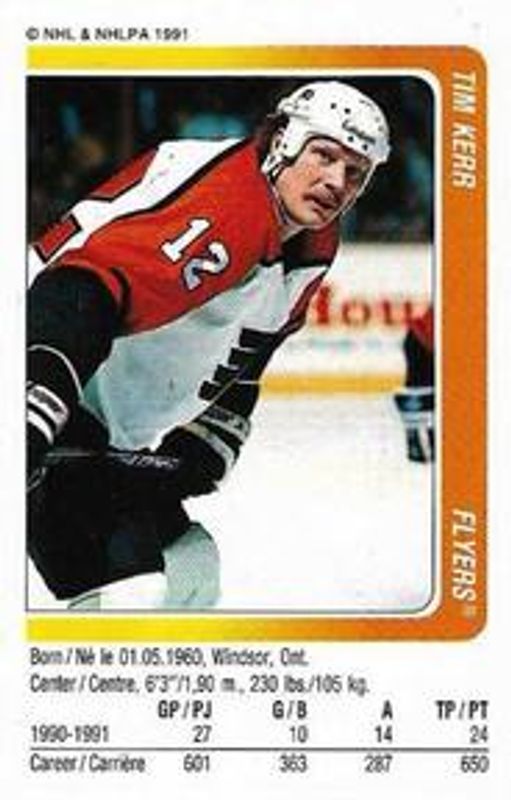 Tim Kerr 1991 Panini Stickers #226 Base RAW Price Guide