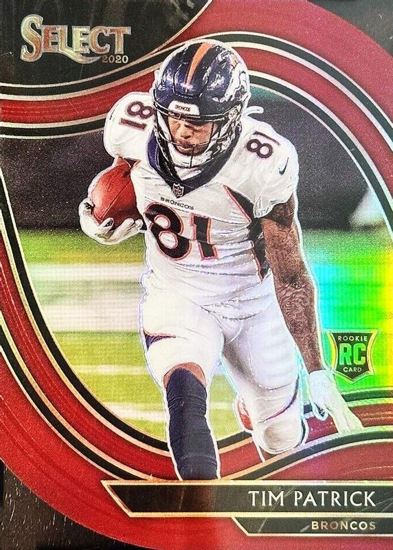 This card is 1 of 37 Tim Patrick's card variations in the 2020 Select set being tracked by Sports Card Investor, including Field Level, Field Level Blue Die-Cut, Field Level Disco, Field Level Light Blue Die-Cut, and Field Level Neon Green Die-Cut.