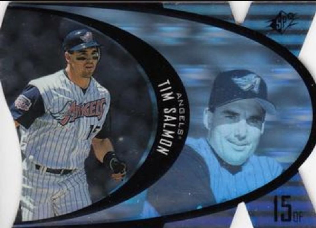 The Tim Salmon 1997 SPx #SPX3 Steel card is 1 of 6 Tim Salmon's card variations in the 1997 SPx set being tracked by Sports Card Investor, including Base, Bronze, Gold, Grand Finale, and Silver.