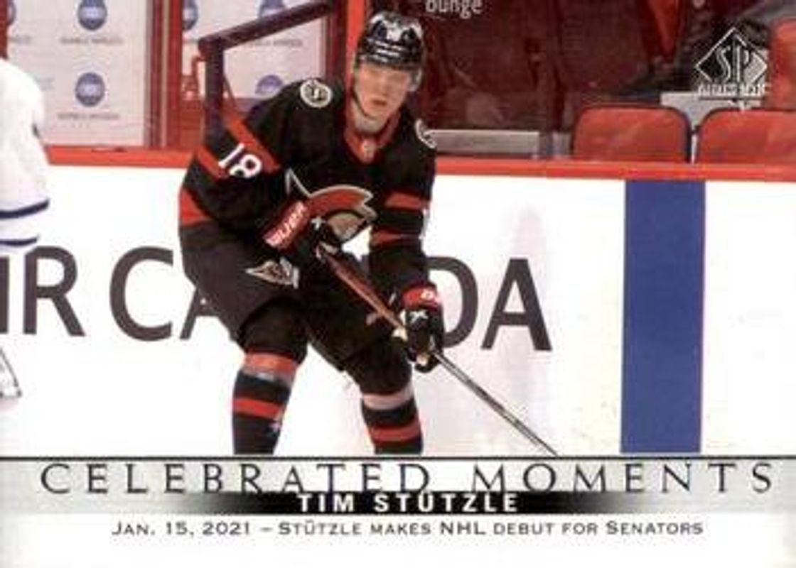 The Tim Stutzle 2020 SP Authentic #114 Base /999 Rookie card is 1 of 15 Tim Stutzle's card variations in the 2020 SP Authentic set being tracked by Sports Card Investor, including Base /999, Black Gold Ink, Future Watch Acetate, 2020 Upper Deck Young Guns Acetate, and Chirography.