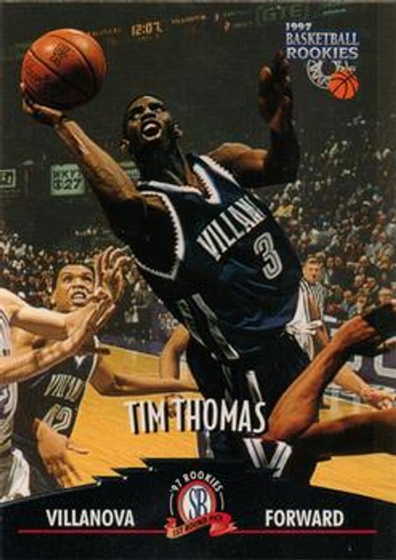 The Tim Thomas (NBA) 1997 Score Board Rookies #52 Base card is 1 of 7 Tim Thomas (NBA)'s card variations in the 1997 Score Board Rookies set being tracked by Sports Card Investor, including #60 Base, #60 Dean's List, #52 Dean's List, #6 #1 Die Cuts, and #52T Traded.