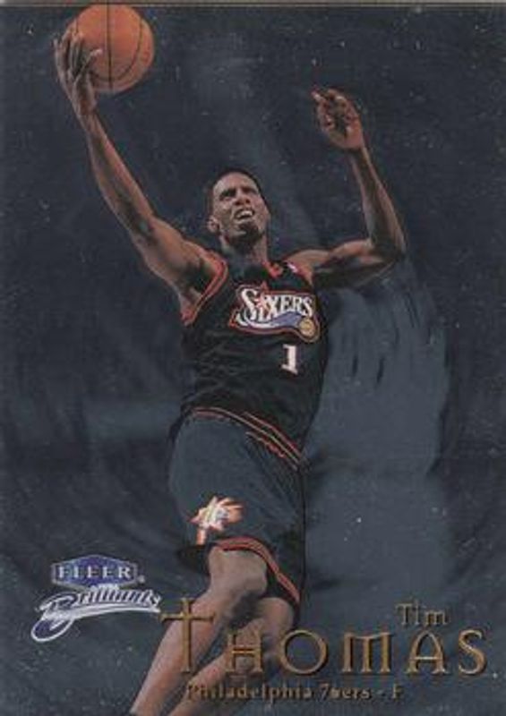 The Tim Thomas (NBA) 1998 Fleer Brilliants #58 Base card is 1 of 6 Tim Thomas (NBA)'s card variations in the 1998 Fleer Brilliants set being tracked by Sports Card Investor, including Blue, Gold /99, Shining Stars, Shining Stars - Pulsars, and 24-Karat Gold /24.