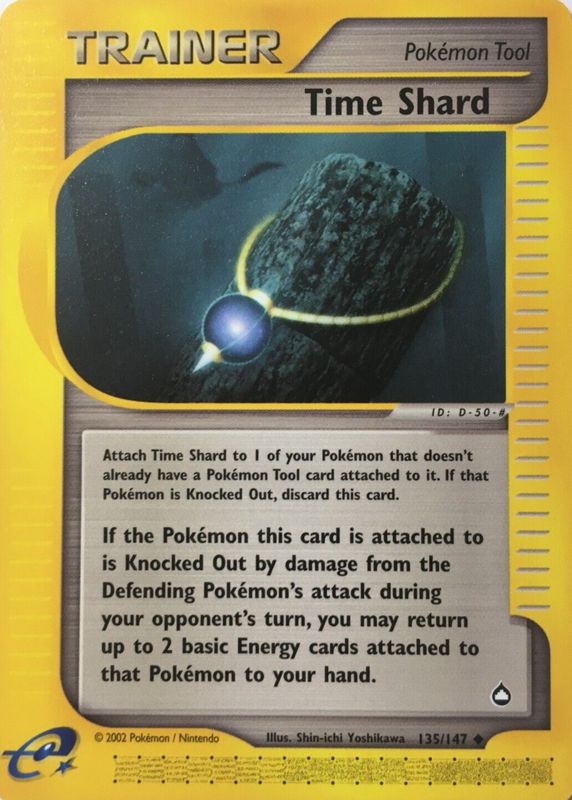 The Time Shard 2003 Aquapolis #135/147 Base card in Raw TCG (Near Mint) condition has moved up $0.85 (+27.0%) in the last 30 days and was last sold for $4.00 .