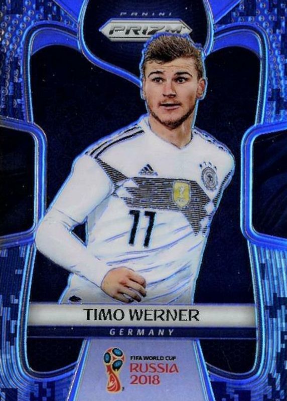 This card is 1 of 21 Timo Werner's card variations in the 2018 Prizm World Cup set being tracked by Sports Card Investor, including Base, Black & Gold Wave, Green & Orange Wave, Hyper, and Lazer.