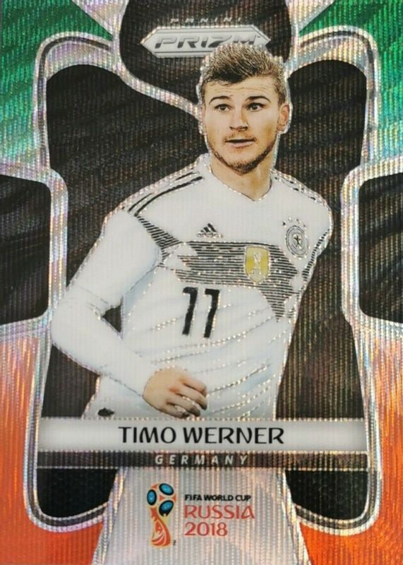 Best Prices Available For Sale of Timo Werner 2018 Prizm World Cup #98 Green & Orange Wave