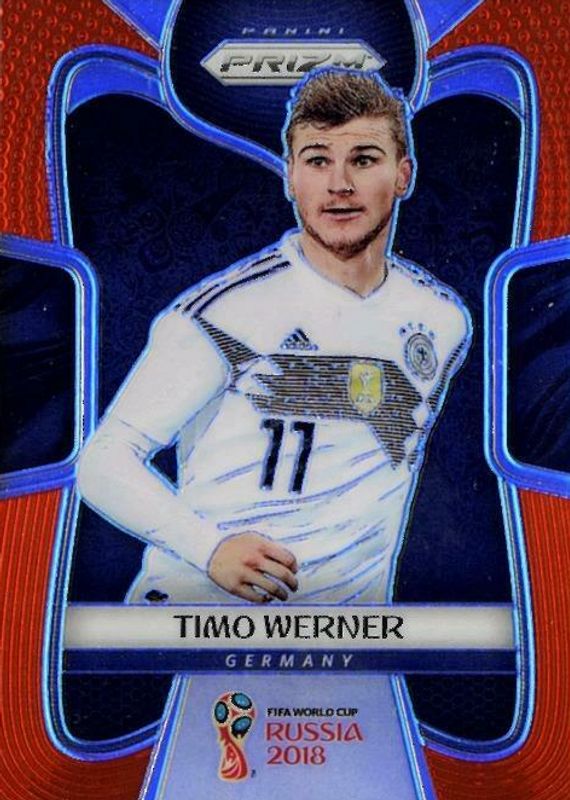 This card is 1 of 21 Timo Werner's card variations in the 2018 Prizm World Cup set being tracked by Sports Card Investor, including Base, Black & Gold Wave, Green & Orange Wave, Hyper, and Lazer.