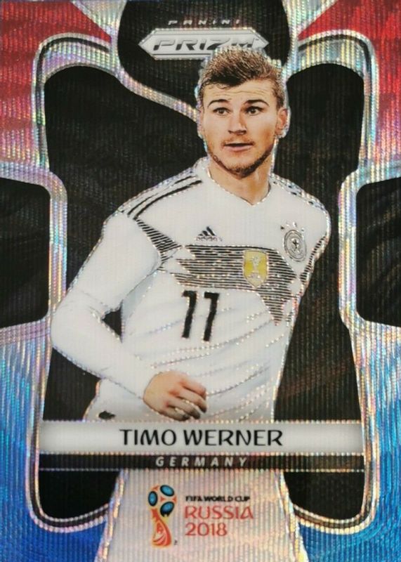 Best Prices Available For Sale of Timo Werner 2018 Prizm World Cup #98 Red & Blue Wave