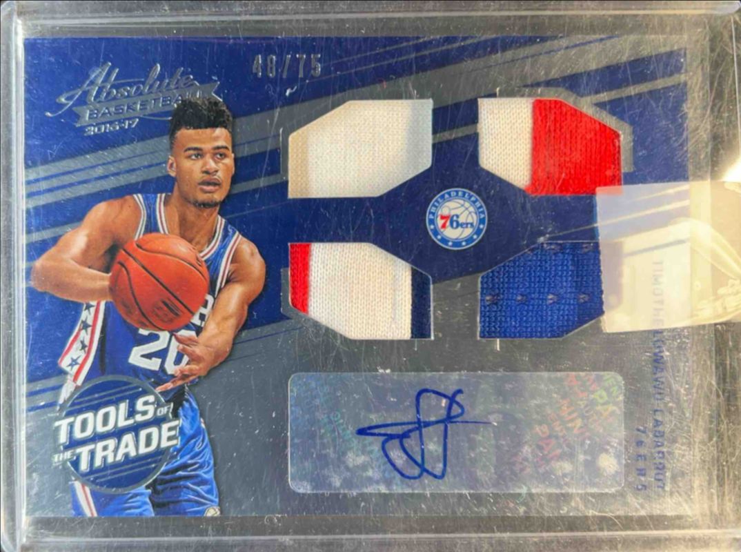 The Timothe Luwawu-Cabarrot 2016 Absolute #17 Tools of the Trade Autographed - Materials /75 Rookie card is 1 of 33 Timothe Luwawu-Cabarrot's card variations in the 2016 Absolute set being tracked by Sports Card Investor, including Base /999, Spectrum Gold /10, Spectrum Black /1, Tools of the Trade Jumbo Rookie - Materials /149, and Tools of the Trade Rookie Materials Dual Relic /149.