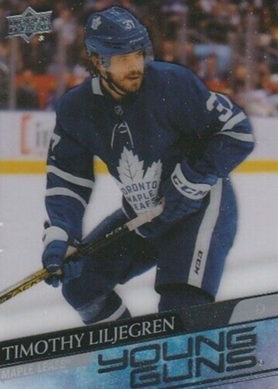 This card is 1 of 9 Timothy Liljegren's card variations in the 2020 Upper Deck set being tracked by Sports Card Investor, including Young Guns Base, Young Guns - Clear Cut Exclusives, Young Guns - French, Young Guns - Jumbo, and Young Guns - Silver Foil.