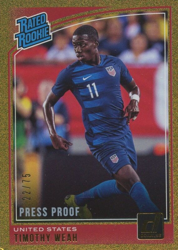 2018 Donruss Timothy Weah Press Proof Gold Rated Rookie #49/75 USA
