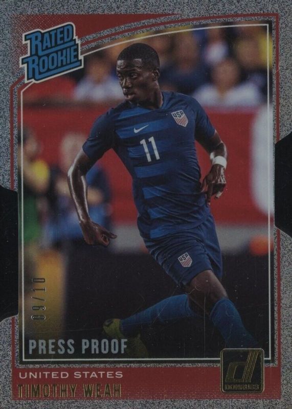 Timothy Weah 2018 Donruss #198 Press Proof Gold Die-Cut /10 Rookie RAW Price Guide