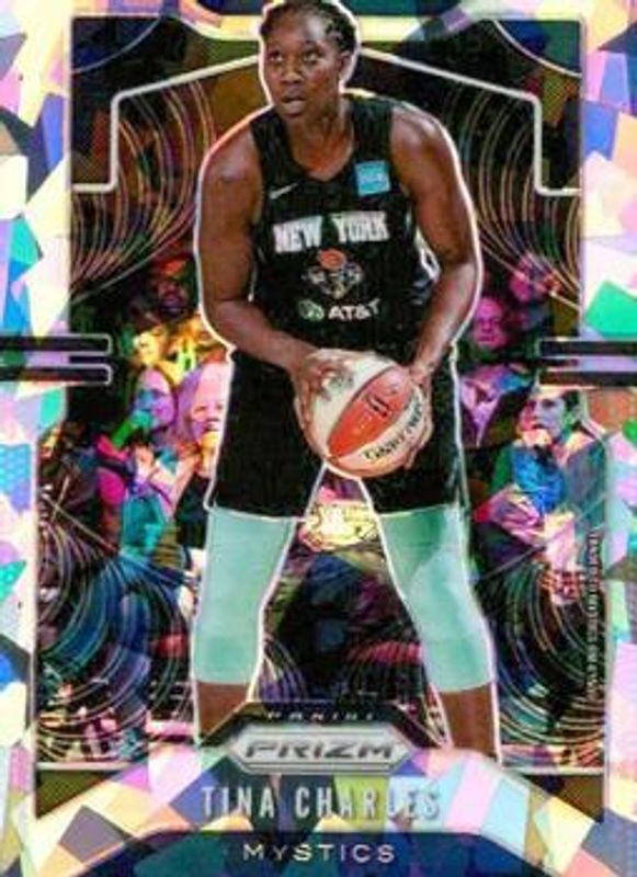 The Tina Charles 2020 Prizm WNBA #45 Ice card is 1 of 60 Tina Charles' card variations in the 2020 Prizm WNBA set being tracked by Sports Card Investor, including Base, Green, Green Ice, Hyper, and Ruby Wave.