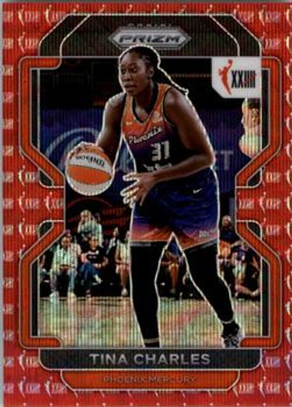 The Tina Charles 2022 Prizm WNBA #159 Ruby Wave card is 1 of 78 Tina Charles' card variations in the 2022 Prizm WNBA set being tracked by Sports Card Investor, including #200 Base, #106 Base, #159 Base, #106 Green, and #200 Green.