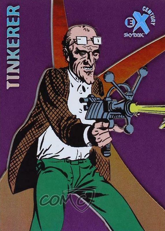 This card is 1 of 8 Tinkerer's card variations in the 2017 Fleer Ultra Spider-Man set being tracked by Sports Card Investor, including EX Century, EX Century Now, EX Century Then, EX Century Then (/2), and Preserved Amber Black & White /175.