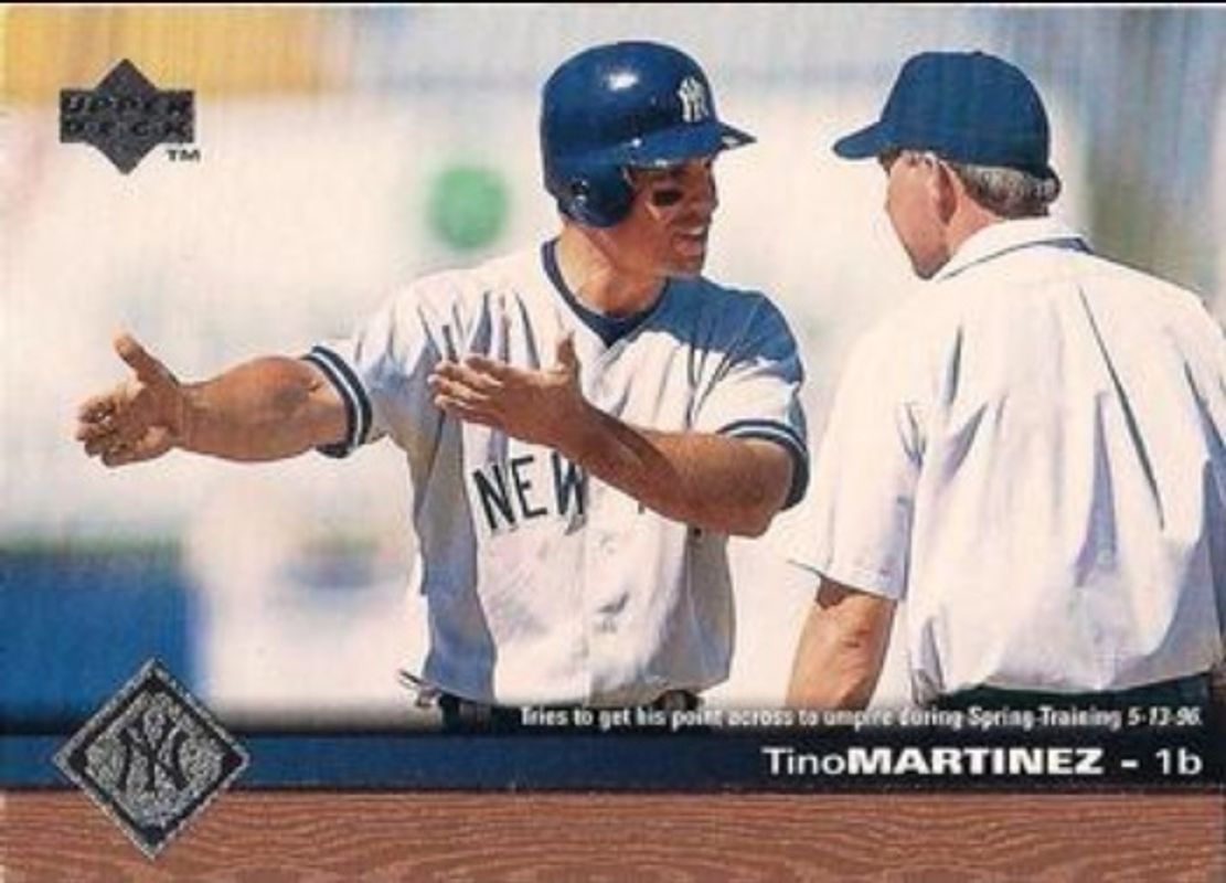 The Tino Martinez 1997 Upper Deck #123 Base card is 1 of 3 Tino Martinez's card variations in the 1997 Upper Deck set being tracked by Sports Card Investor, including Star Attractions, and Star Attractions Gold.