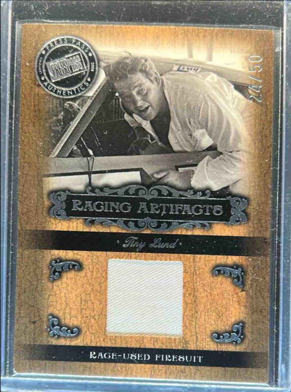 Tiny Lund 2008 Press Pass Legends #TLu-F Racing Artifacts Firesuit Silver /50 RAW Price Guide