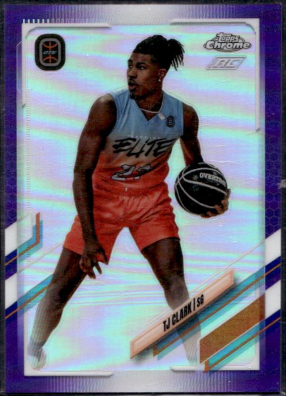 The TJ Clark 2021 Topps Chrome OTE Overtime Elite #85 Purple /299 card is 1 of 156 TJ Clark's card variations in the 2021 Topps Chrome OTE Overtime Elite set being tracked by Sports Card Investor, including #41 Base, #85 Base, #23 Base, #66 Base, and #23 OTE Refractor.