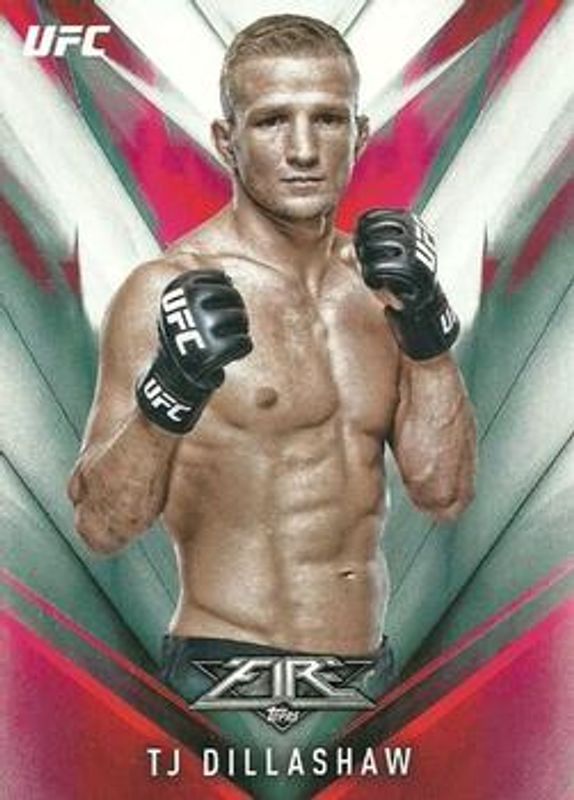 The TJ Dillashaw 2017 Topps Fire UFC #13 Base card is 1 of 5 TJ Dillashaw's card variations in the 2017 Topps Fire UFC set being tracked by Sports Card Investor, including Red Hot /142, Blue Flame /25, Inferno /1, and Fired Up.