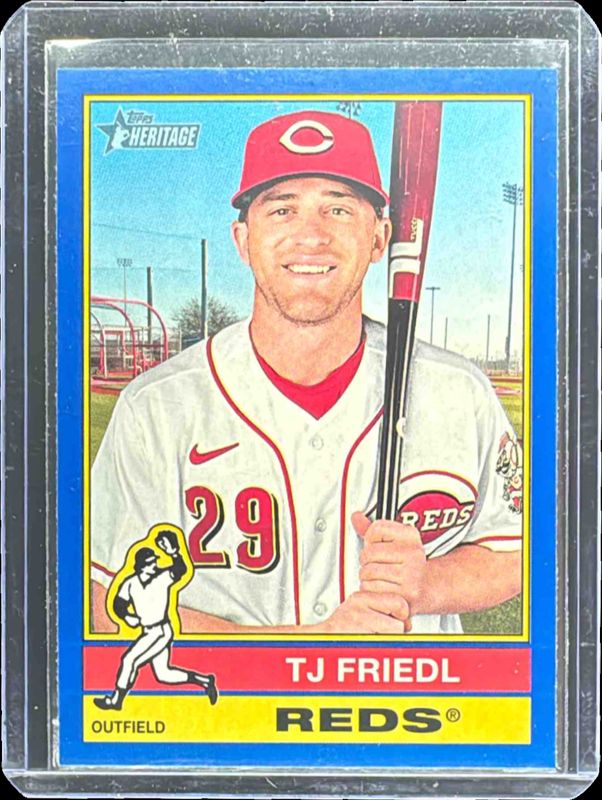 The TJ Friedl 2025 Topps Heritage #491 Base card is 1 of 24 TJ Friedl's card variations in the 2025 Topps Heritage set being tracked by Sports Card Investor, including Black Border, Dark Blue Border, Dark Green Border, Dark Yellow Border, and Light Purple Border.