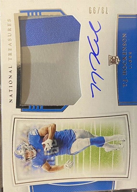 The TJ Hockenson 2019 National Treasures #179 Rookie Patch Auto /99 card in Raw condition has not changed in price in the last 30 days and was last sold for $35.20 .