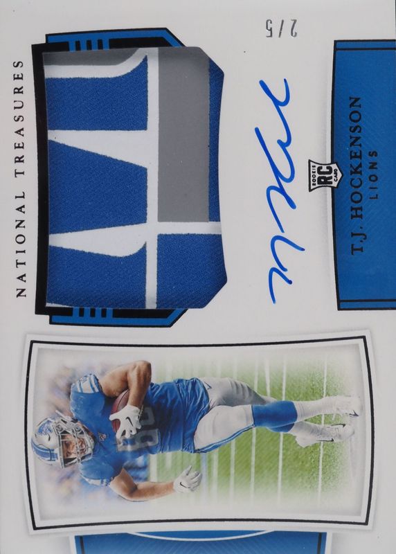 This card is 1 of 11 TJ Hockenson's card variations in the 2019 National Treasures set being tracked by Sports Card Investor, including Rookie Patch Auto /99, Rookie Patch Auto - Green Jersey Number (/88), Rookie Patch Auto - Holo Silver /25, Rookie Patch Auto - Midnight /20, and Rookie Patch Auto - Holo Gold /10.