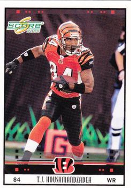 The TJ Houshmandzadeh 2005 Score #62 Base card is 1 of 6 TJ Houshmandzadeh's card variations in the 2005 Score set being tracked by Sports Card Investor, including Glossy, Scorecard /599, Adrenaline /399, Revolution /199, and Final Score /17.