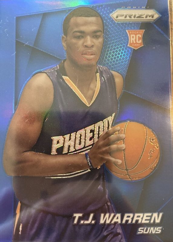 This card is 1 of 37 TJ Warren's card variations in the 2014 Prizm set being tracked by Sports Card Investor, including Base, Blue Green Mosaic, Blue Mojo, Blue Wave, and Green.