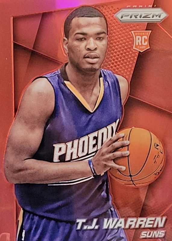 This card is 1 of 37 TJ Warren's card variations in the 2014 Prizm set being tracked by Sports Card Investor, including Base, Blue Green Mosaic, Blue Mojo, Blue Wave, and Green.