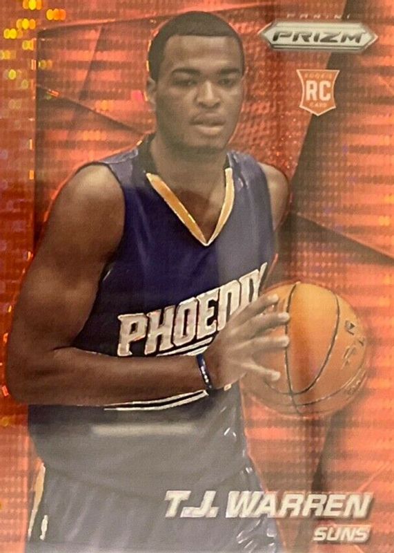 This card is 1 of 37 TJ Warren's card variations in the 2014 Prizm set being tracked by Sports Card Investor, including Base, Blue Green Mosaic, Blue Mojo, Blue Wave, and Green.