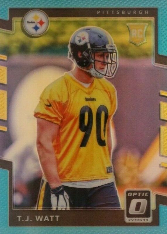 TJ Watt's Football cards are available in at least 86 sets. TJ Watt's biggest 7-day price movers are 2017 Donruss #372 Press Proof Blue, 2017 Unparalleled #255 Base, and 2017 Score #336 Base.