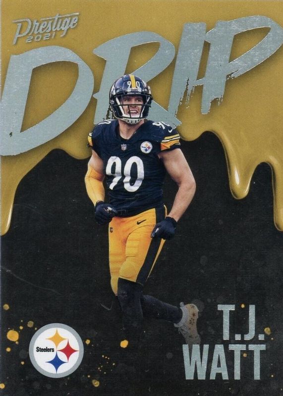The TJ Watt 2021 Prestige #ND-TJ NFL Drip /(SSP) card in Raw condition has moved up $9.99 (+25.0%) in the last 30 days and was last sold for $49.99 .