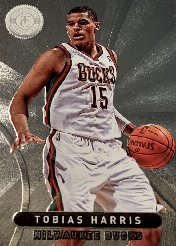 This card is 1 of 16 Tobias Harris' card variations in the 2012 Totally Certified set being tracked by Sports Card Investor, including Totally Red /499, Totally Blue /299, Totally Gold /25, Totally Green /5, and Printing Plate Black /1.