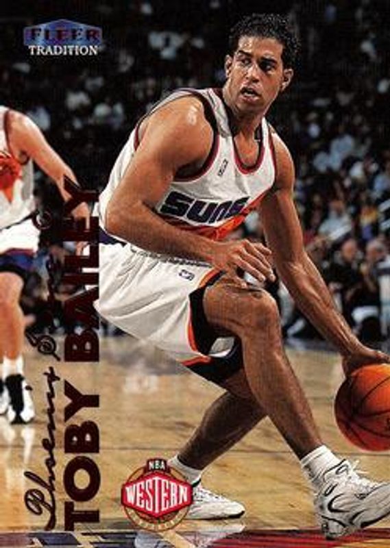 The Toby Bailey 1999 Fleer Tradition #25 Base card is 1 of 3 Toby Bailey's card variations in the 1999 Fleer Tradition set being tracked by Sports Card Investor, including Roundball Collection, and Supreme Court Collection /20.